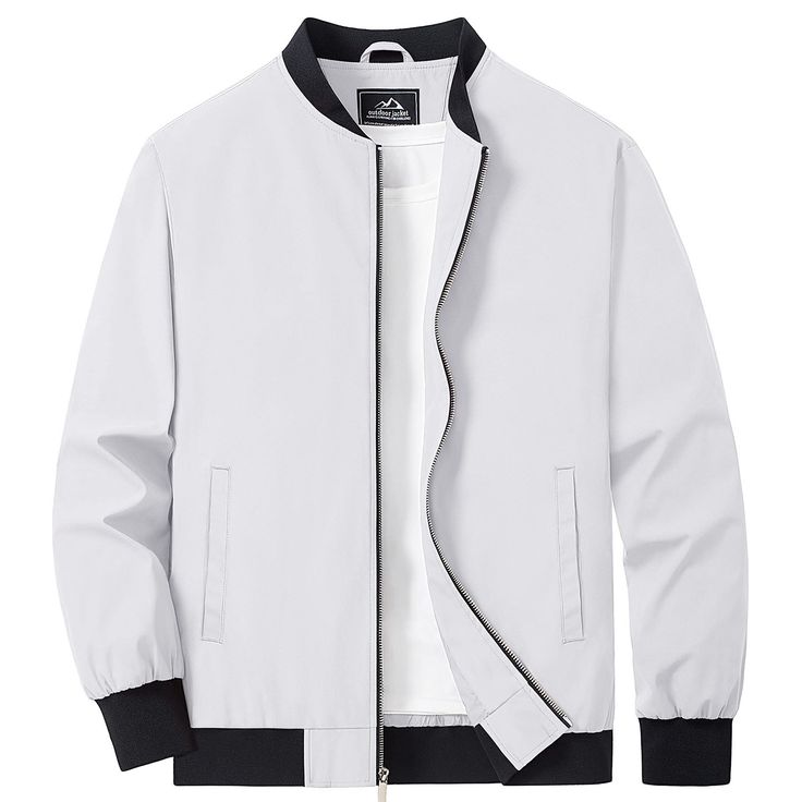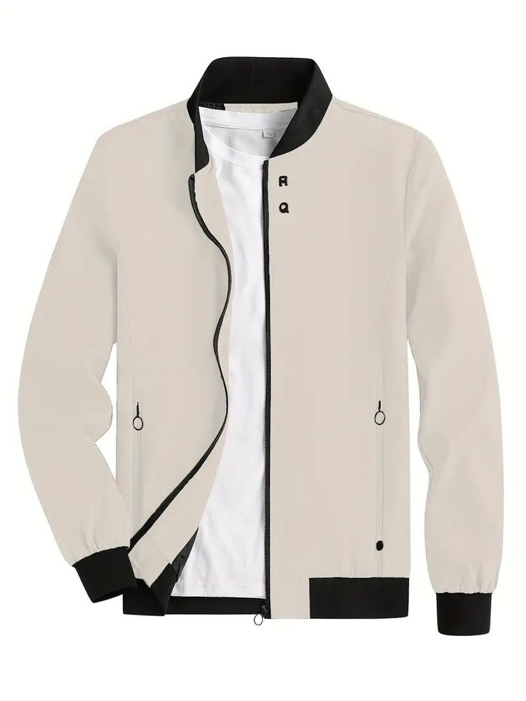 Men's Zip-Up Bomber Jacket - Grey with Black Trim
